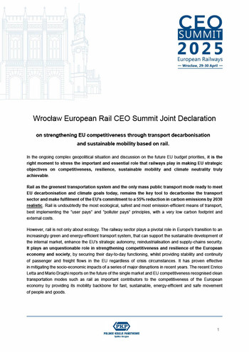 the railway sector remains a driver of change both in Europe and worldwide.